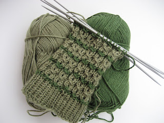 Dette blir pulsvarmere i deilige MiniDuett fra SandnesGarn. Tror faktisk jeg skal strikke et matchende skjerf etter hvert og, tror det hadde vært kjekt. Disse blir strikket etter DENNE OPPSKRIFTEN, og jeg bruker pinner nr2,5. (jeg strikker løst...). Jeg endret oppskriften bittelitt ved å legge opp 60masker istede for 50, men det er fordi jeg bruker mye tynnere garn. Det er samme oppskrift som jeg bruke for å lage pulsvarmerene i DETTE INNLEGGET, men de ble alt for små til meg, så jeg bestemte meg for å ha 10masker mer. Jeg strikker dem også litt kortere enn oppskriften sier, da jeg ikke vil at de skal gå så enormt langt oppover armene. Det ser iallefall ut til å bli rimelig perfekt :) Jeg er veldig glad i dette mønsteret da det er krevende nok til å ikke bli kjedelig, men enkelt nok til at jeg kan se tv samtidig.